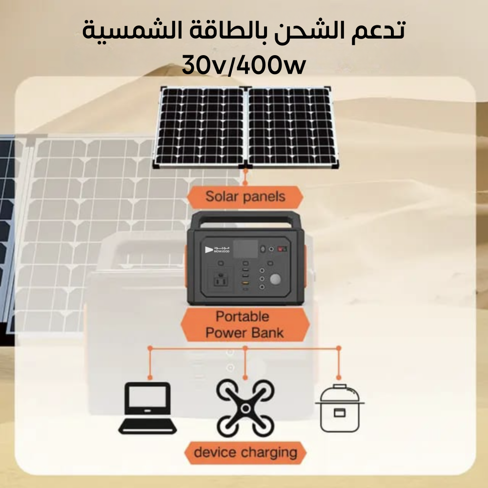 سعة كبيرة بقدرة 400 واط: بطارية بسعة 109200mAh (3.7V) توفر طاقة طويلة الأمد لتشغيل الأجهزة المختلفة.