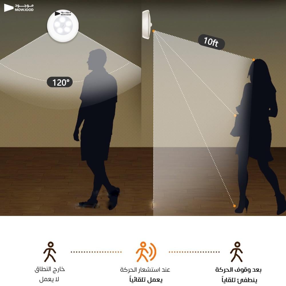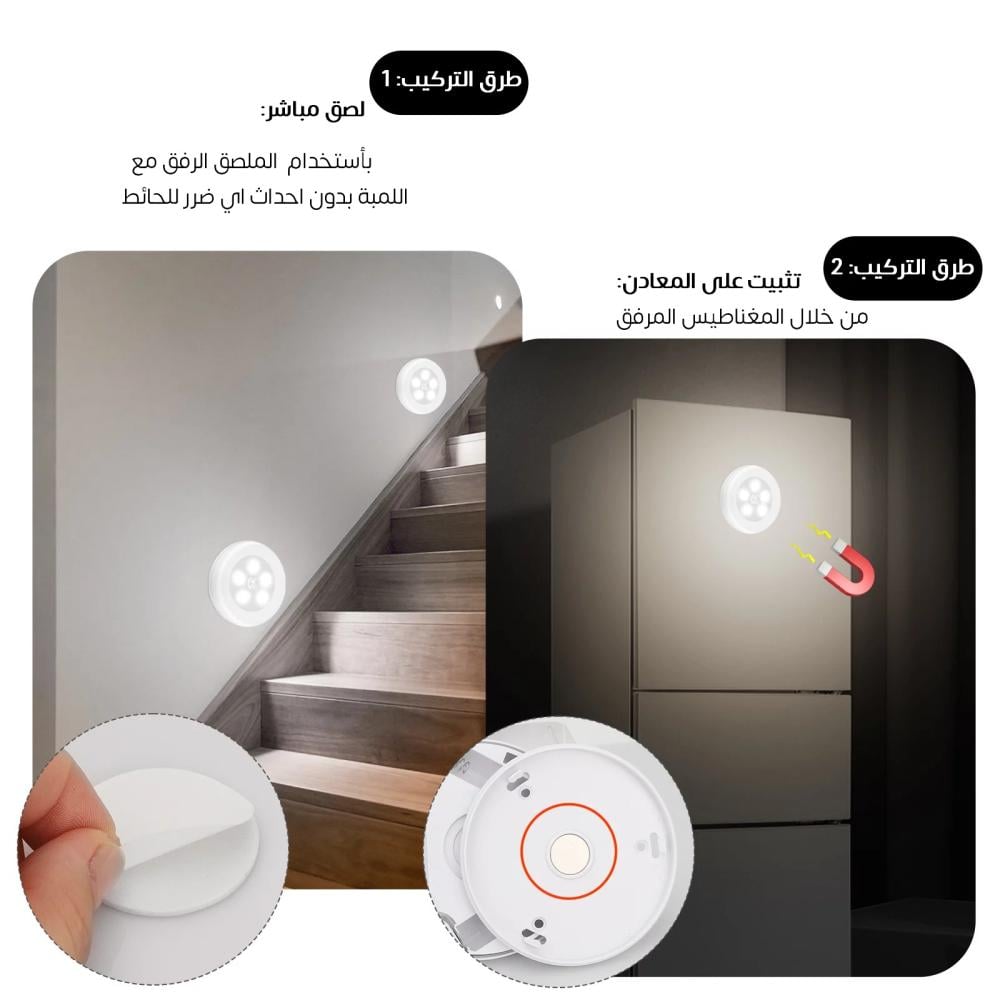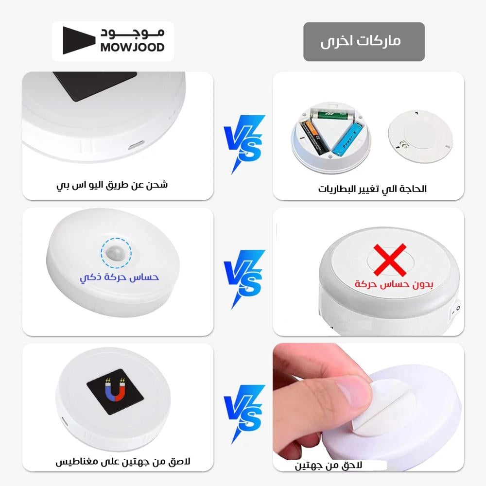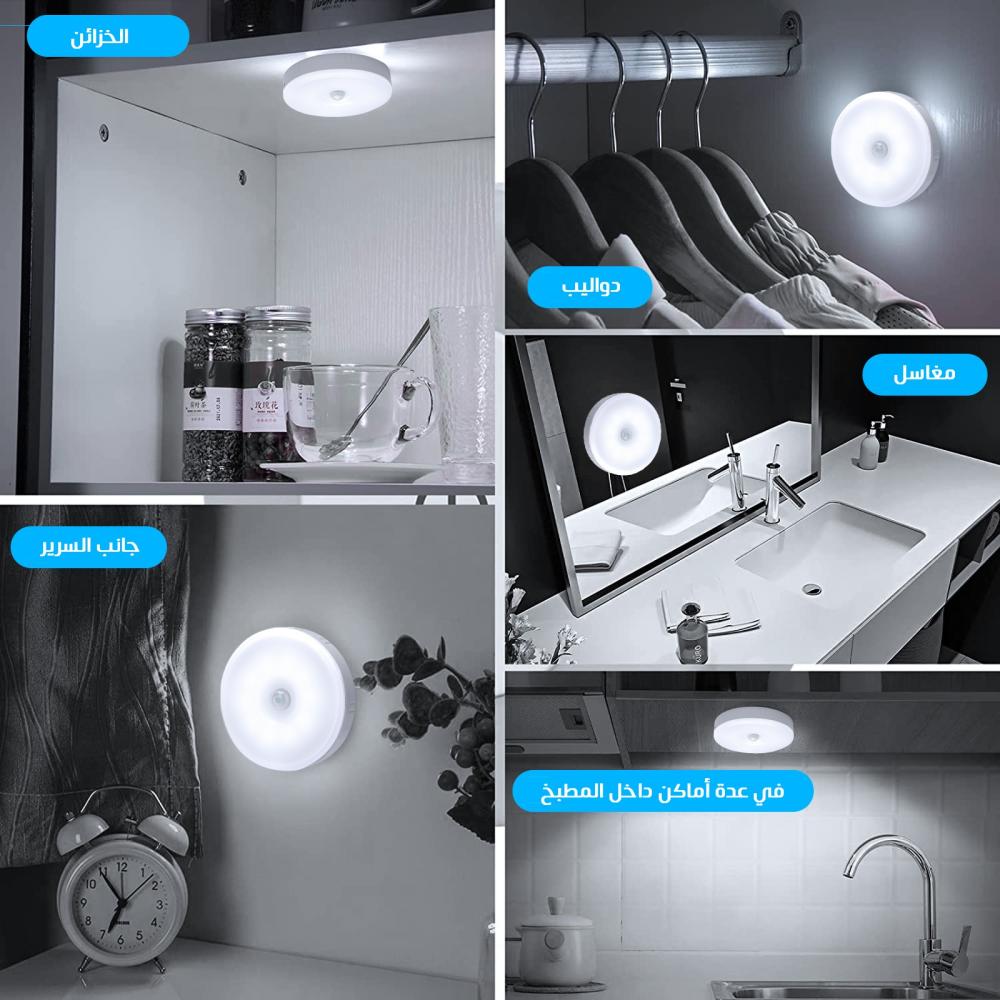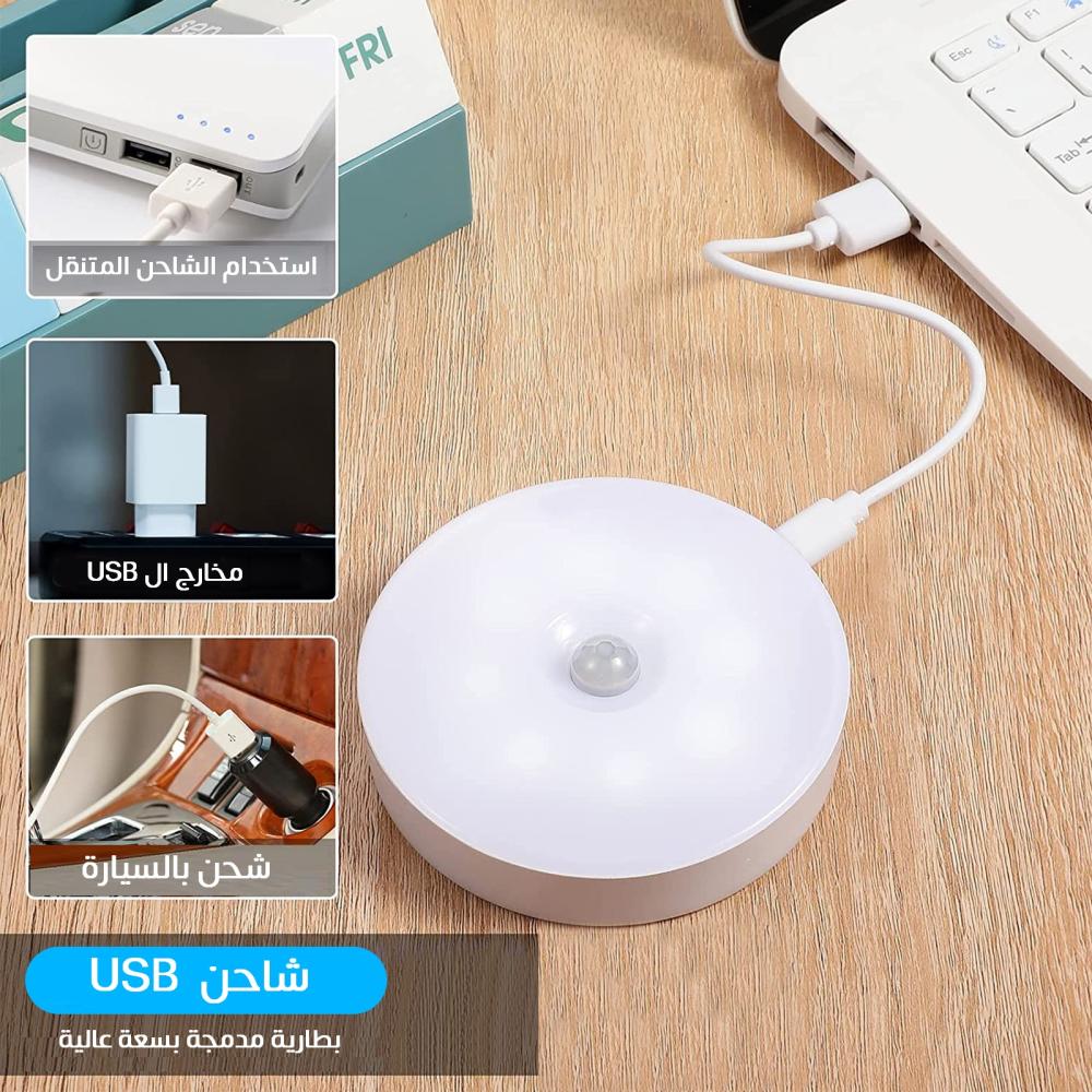 لمبة خزائن ومصابيح للمطبخ والحمام وغرف النوم والدرج قابلة للشحن مزودة بحساس حركة بشكل دائري ولون اضاءة كريمي AAA196